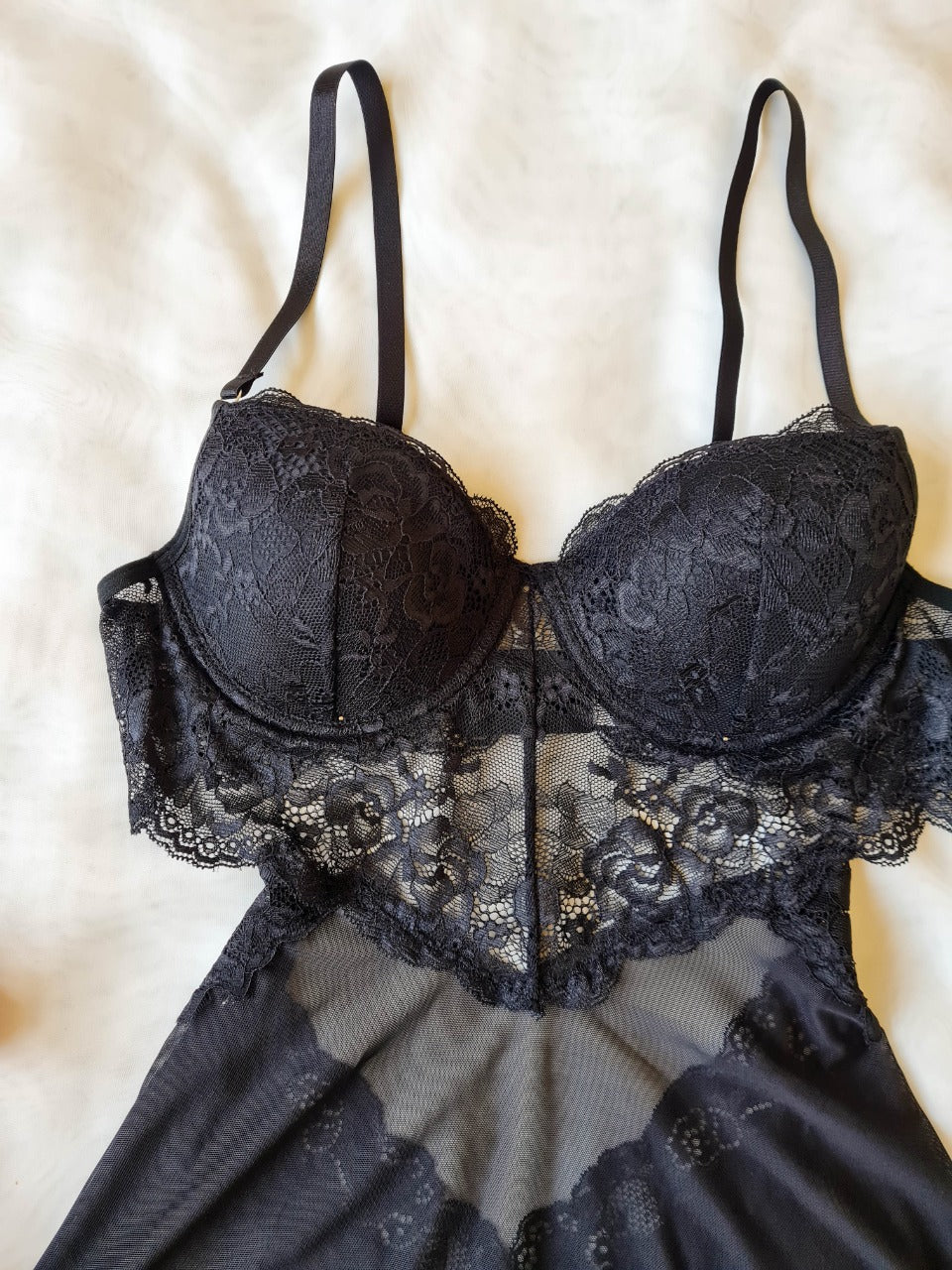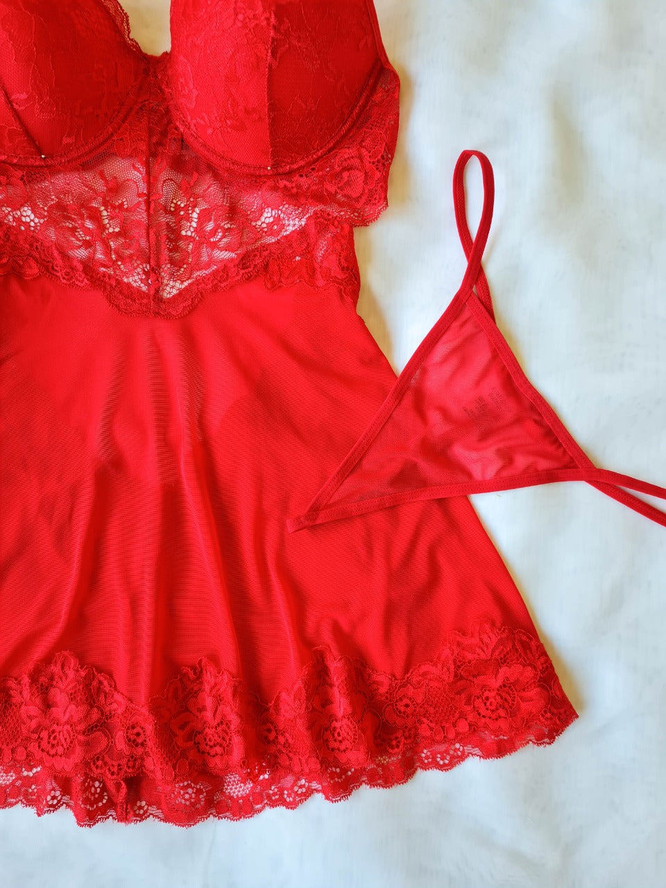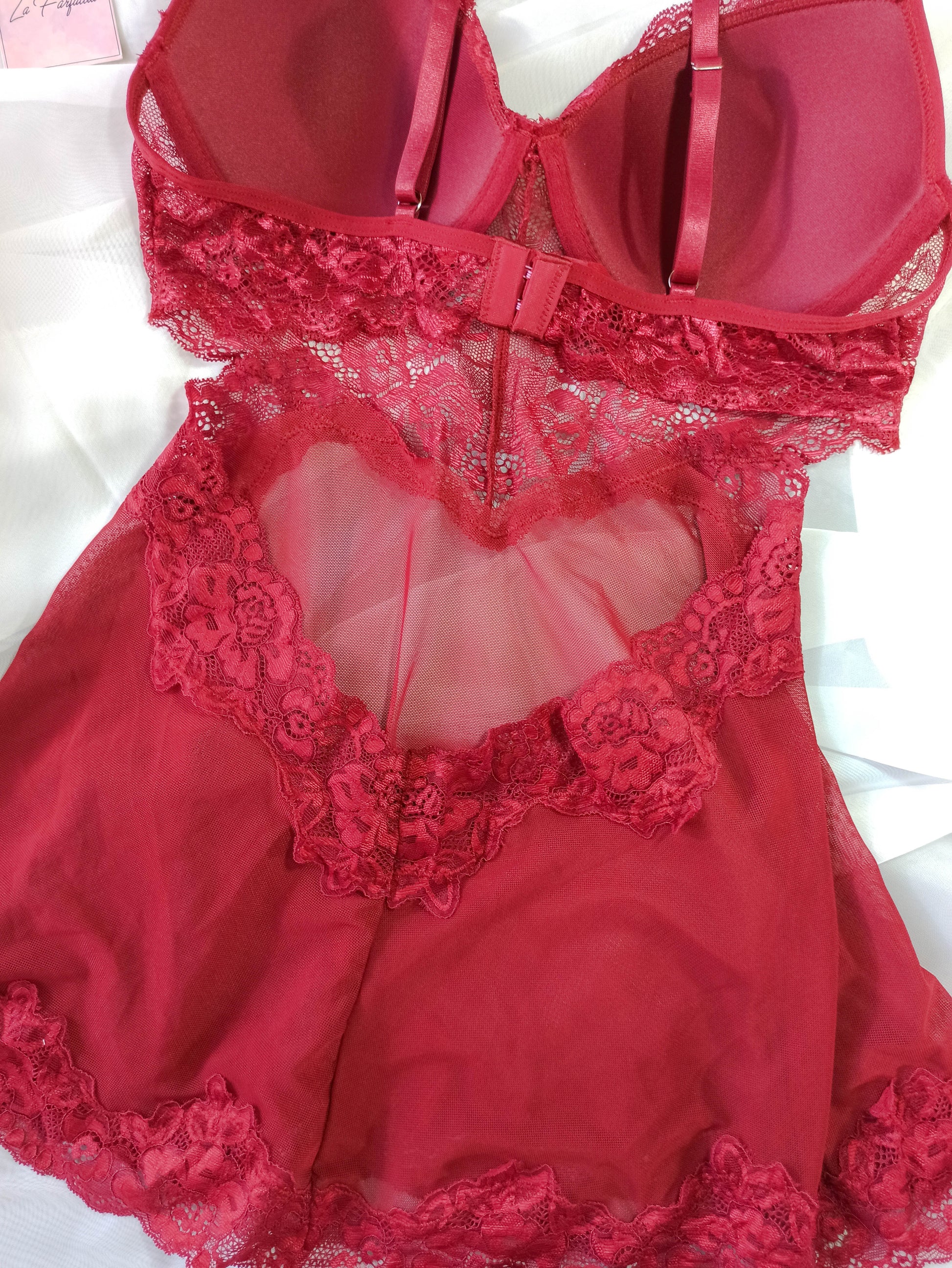 Babydoll Mónica es un babydoll tipo vestido de transparencia y encaje elasticado, con copa preformada para mayor realce. Este babydoll tiene breteles ajustable y un escote profundo en la espalda en V que lo hace muy sexy, el vestido es corto y llega justo debajo del trasero. Incluye un calzón colaless hilo perfecto para que se vea debajo del vestido.