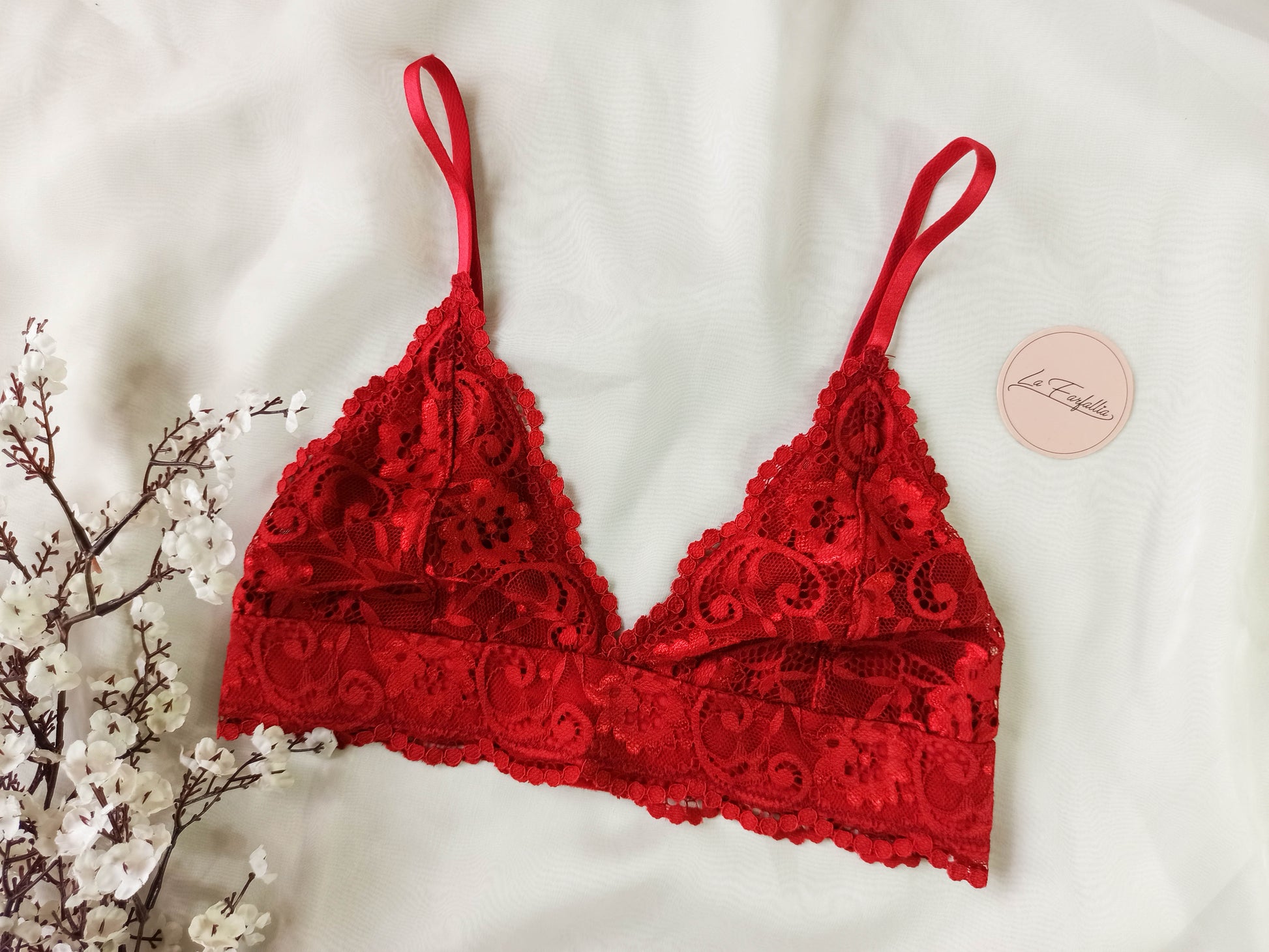 Bralette Anastasia es un bralette completo de encaje semi elasticado, de corte triángulo, broche posterior y breteles ajustables.