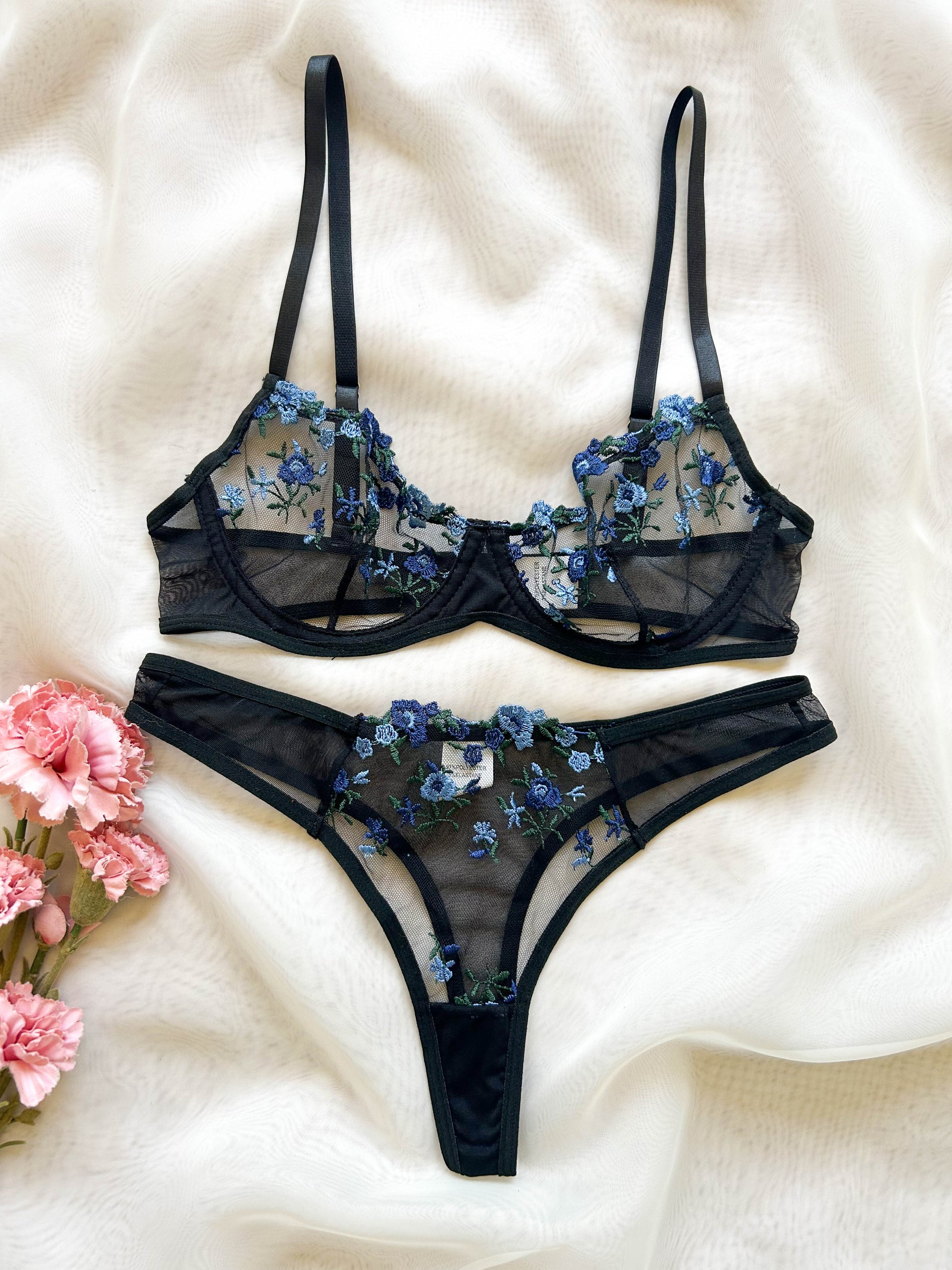 Magnolia es la mezcla perfecta entre sensualidad y ternura. Si eso es lo que buscas, este diseño es perfecto. Este conjunto es de malla con diseños de flores bordados y transparencia. El sostén tiene barbas, breteles ajustables y broche en la espalda de tres posiciones. El calzón es tipo colaless y tiene tela elasticada a los lados para mayor comodidad.